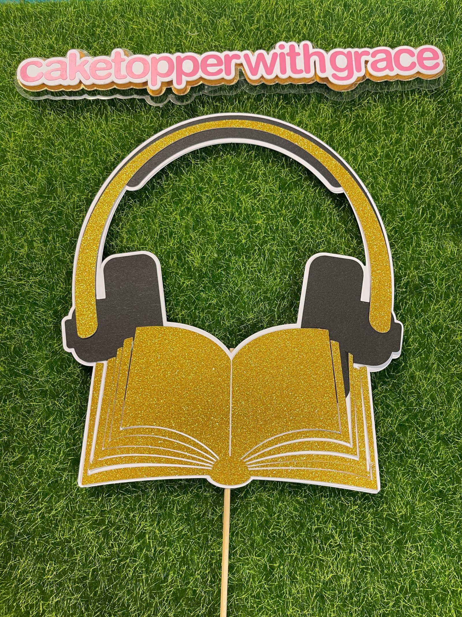Headset and book cake topper