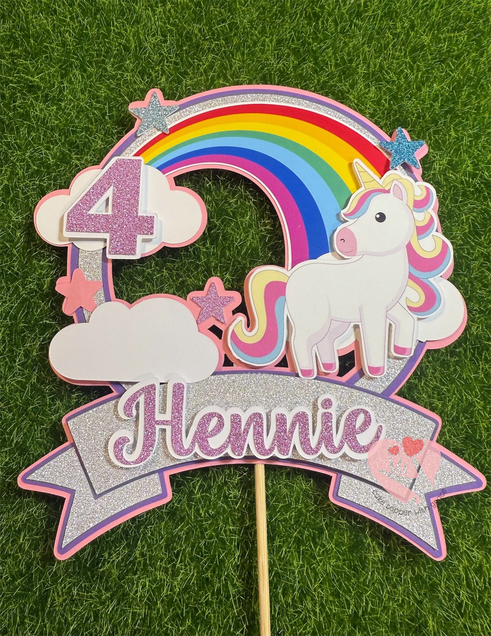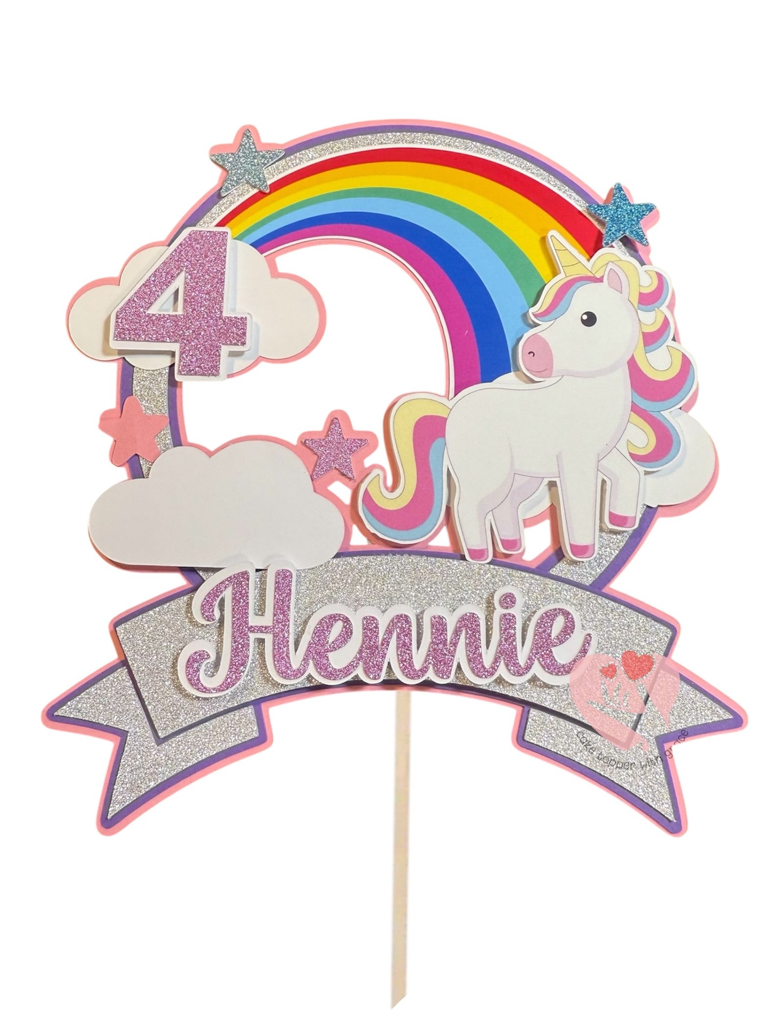Add a touch of whimsy to your celebrations with our enchanting Unicorn with Rainbow Cake Topper. Perfect for birthdays, baby showers, or any special occasion, this delightful topper features a charming unicorn adorned in vibrant pastel colors, emerging from a gorgeous rainbow. Create unforgettable memories with this whimsical centerpiece that brings the magic of fantasy to your table!